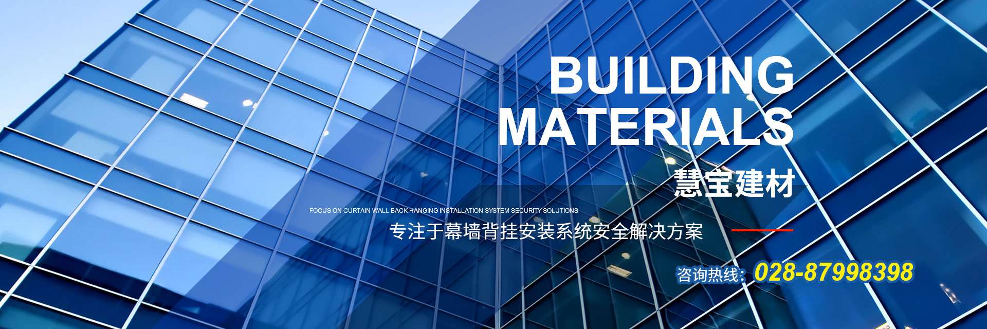 成都慧寶建材有限公司,成立于2008年,是一家集建筑幕墻研發(fā)、加工銷售、干掛安裝為一體的企業(yè)。公司秉承“一起創(chuàng)造,共同分享”的 企業(yè)理念,專注于幕墻背掛安裝系統(tǒng)安全解決方案。 公司擁有專業(yè)的工程技術、銷售及售后服務團隊,為客戶提供技術培訓和技術咨詢。公司以市場為導向,質量標準為原則,客戶滿意為宗旨,本著“誠信和諧、合作共贏”的經營理念,繼續(xù)貫徹“創(chuàng)新進取、追求卓越”的經營方針,為客戶提供更加優(yōu)良的服務! 查看更多